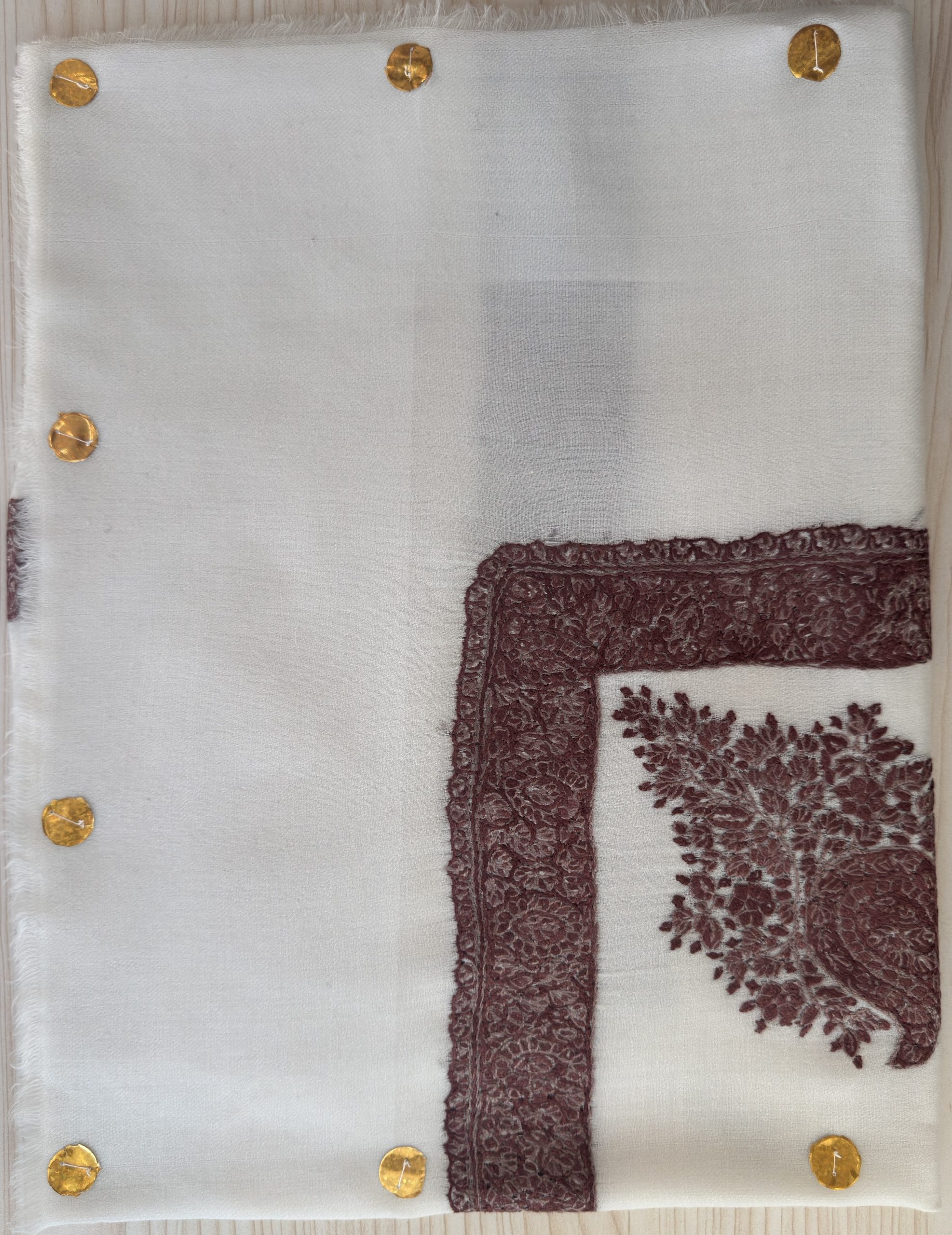 Cashmere Semi-Pashmina Hand Embroidered Rumal Brown