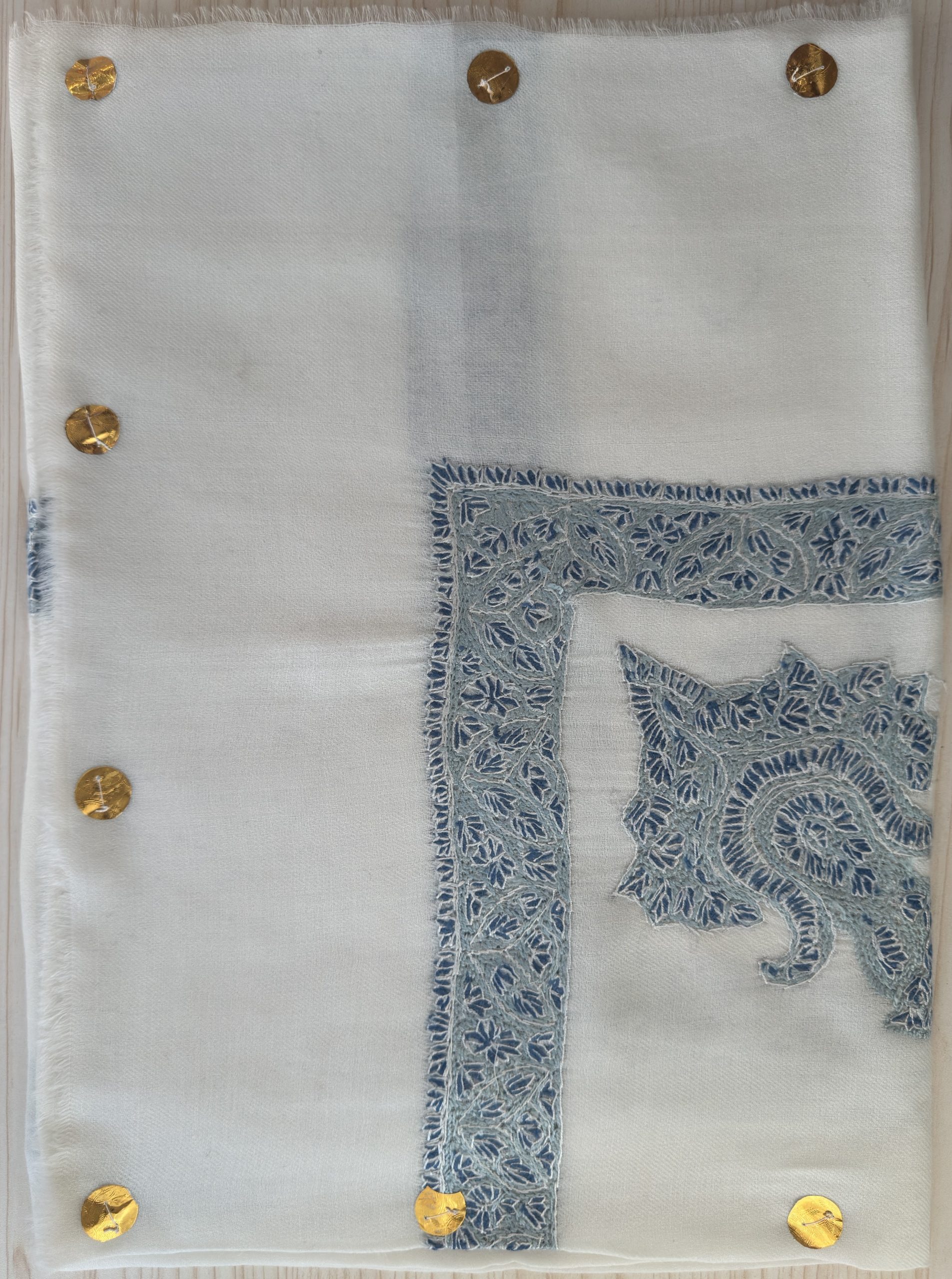 Cashmere Semi-Pashmina Hand Embroidered Rumal blue